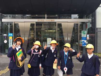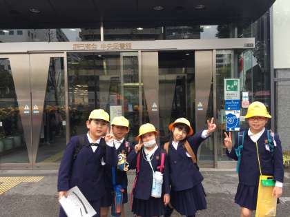 無事に大阪市立中央図書館(西区)に到着して、記念写真を撮りました。
