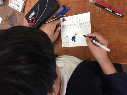 学習の様子です。大阪市立敷津小学校の糸井校長先生と大阪市立南恩加島小学校の大倉教頭先生が、授業を参観してくださり、授業後、