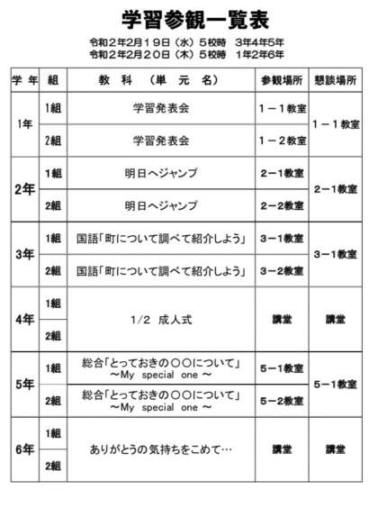 学習参観と学年集会のPDFは、こちらです。→