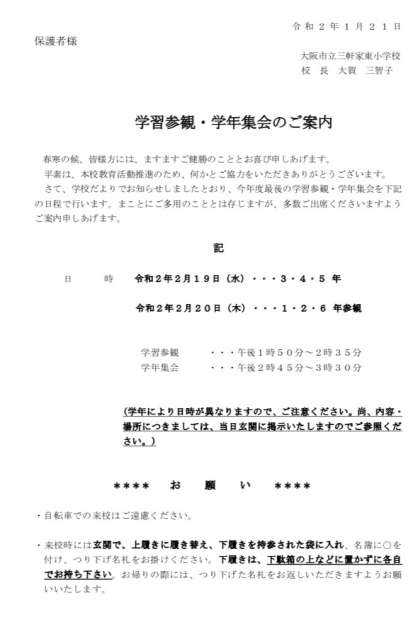 【ご案内】参観と学年集会