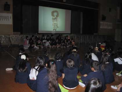 今日の児童集会は、読書週間にちなんで、図書委員会による「絵本の読み聞かせ」でした。「100万回生きたねこ」のお話を読んでくれました。大きな画面に絵を映し出して、しっかり読んでくれました。みんな一生懸命に聞いていました。