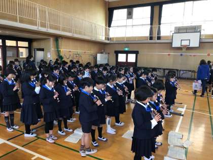 1.2年生は、歌いました。練習を一生懸命に取り組んでいたので、自信をもって歌えました。3.4年生はリコーダーの音のハーモニーが良かったです。6年生は最上級生らしく堂々と演奏していました。