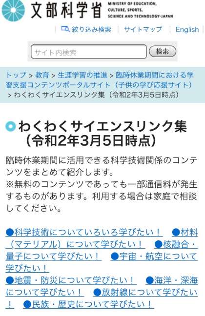 【家庭学習のススメ】わくわくサイエンスリンク集