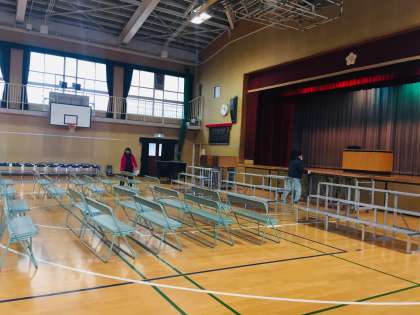 先生たちは、今日、卒業式の会場の準備をしました。長い休みですが、家での自分のやくわりや家庭学習をして、安全にすごしましょう。
