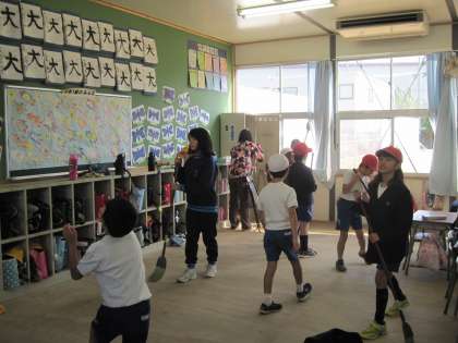 今日も午前中は各教室に入って子どもたちとかかわってくれました。昼休みはドッジボールをして、その後はそうじもいっしょにしました。