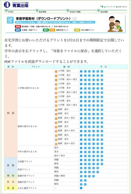 【ご案内】家庭学習教材 無料ダウンロード(青葉出版)