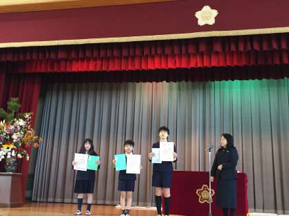 校長先生から、表彰されました。