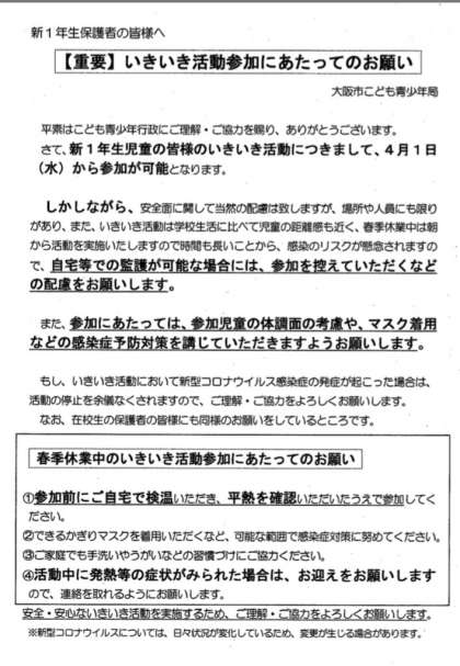 いきいき活動の活動休止基準について(休止の案内ではありません。)