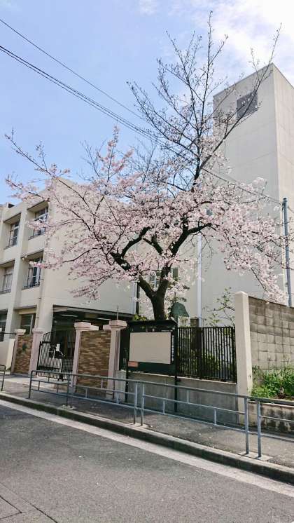 さんげんやひがししょうがっこうの さくらが、きれいにさいています。