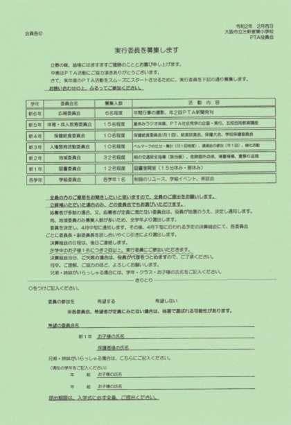 (PTA実行委員の募集のお手紙)