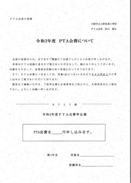 (PTA会費申込書)