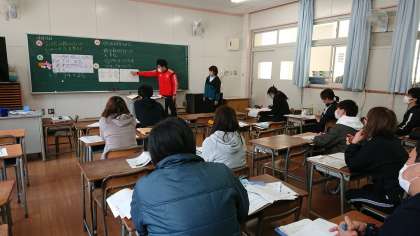 今週は 、教員が子ども役をして 「模擬授業」を行いました。