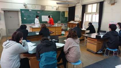 今週は 、教員が子ども役をして 「模擬授業」を行いました。
