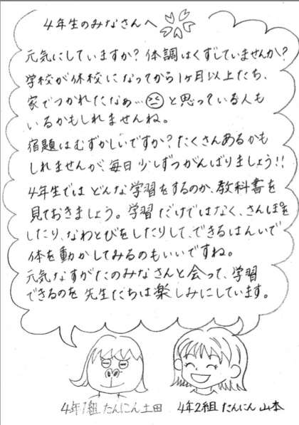 「たいせつなみなさん」へのメッセージです。PDFは、こちらです。→