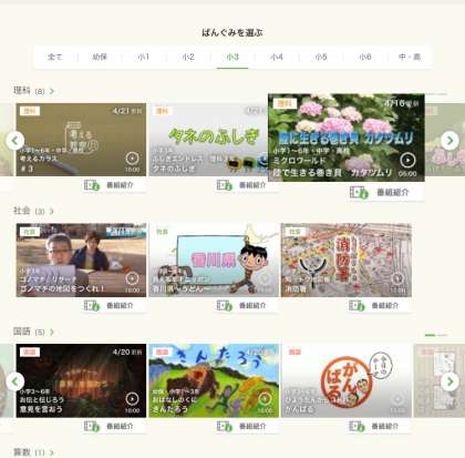 学年別で、番組を選択することができます。→