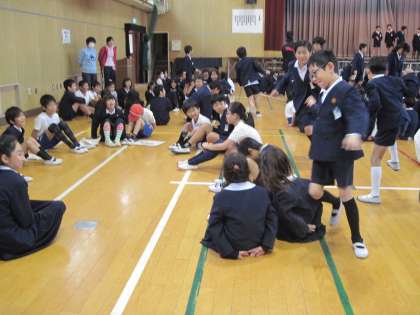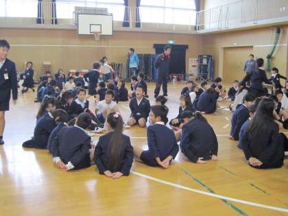 今日の児童集会では、「ハンカチ落とし」をしました。縦割り班で楽しく活動できました。