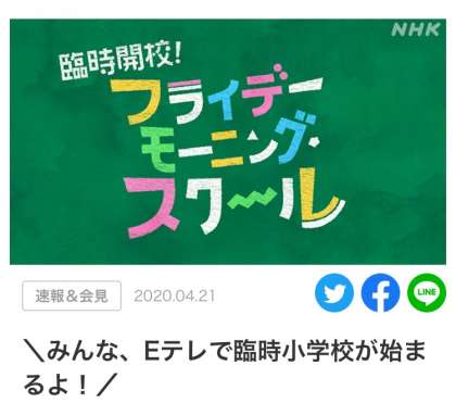 【家庭学習の紹介】NHKテレビ番組 臨時小学校「フライデー モーニング スクール」