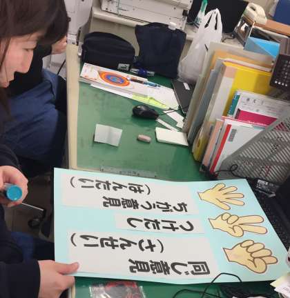 先生は、ハンドサインのけいじぶつを作りました。みなさんが、ハンドサインをつかって、意見をたくさん伝え合える日が来ることを楽しみにしています。