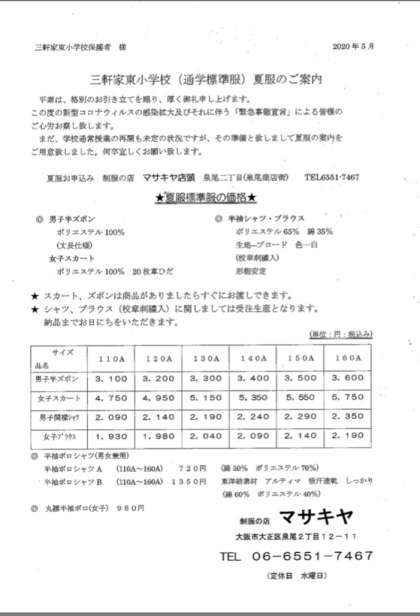 【ご案内】通学標準服 夏服のご案内