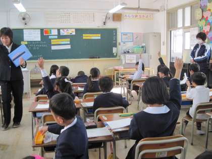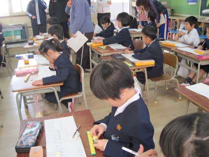 5時間目に1年3組で授業研究会を行いました。繰り下がりのある「ひきざん」の仕方について学習しました。みんな集中して、しっかり考えていました。