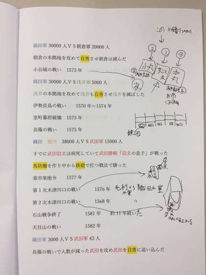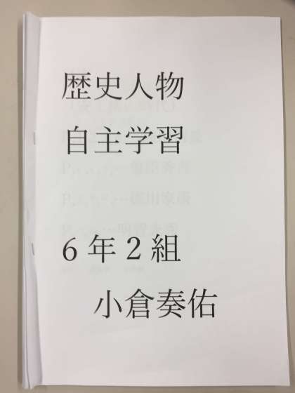 歴史人物(織田信長、豊臣秀吉、徳川家康、明智光秀)について、12ページにまとめています。パソコンのキーボードを使って、まとめたことをタイピングしています。