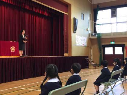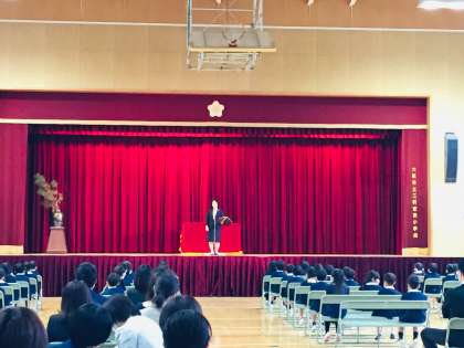 今日は、入学にかかるオリエンテーションを行いました。1年生は、校長先生のお話を落ちついて聴いていました。