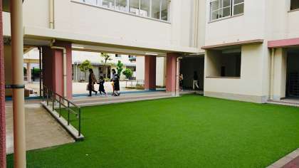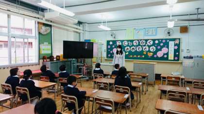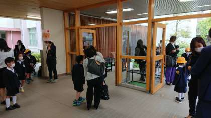 入学にかかるオリエンテーションの様子です。初めて、教室に入りました。
