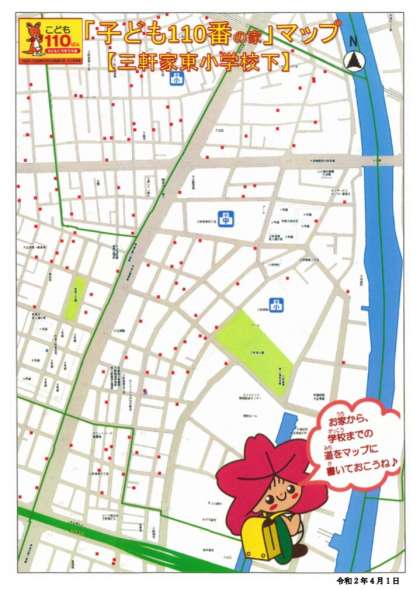 三軒家東小学校下「子ども110番の家」マップ PDF版は、こちらです。→