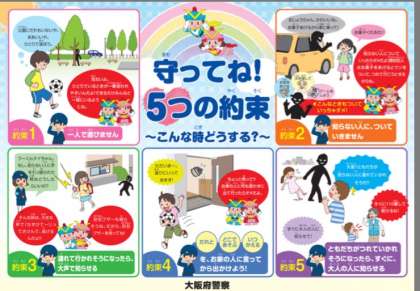 「守ってね!5つの約束」 大阪府警察のホームページは、こちらです。→ https://www.police.pref.osaka.lg.jp/topics/8214.html