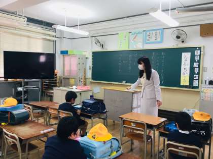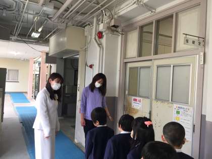 1年生の活動の様子です。保健室の先生のお話を聞きました。