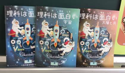 昨年度、三軒家東小学校がモデル校として、「理科は面白い」の学習の取り組みをしました。今年度は、大阪市のすべての小学校に配布されました。新しく『地球』と『太陽と月』が入りました。