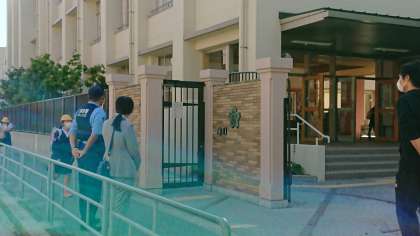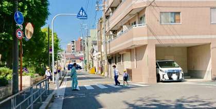 今日は分散登校をしました。児童が安全に登校ができるように、大正警察署の方が見回りをしてくださいました。