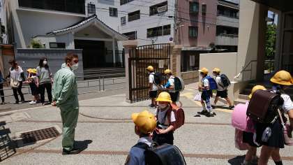 午前のグループの下校の様子です。
