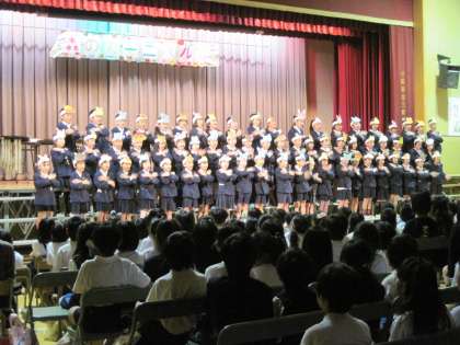 ふだんがんばっている音楽の成果を発揮してくれました。リズムがしっかりと合った合奏と笑顔いっぱいで歌ってくれた合唱。観ている子たちも思わずふりを真似していました。