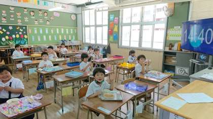 分散登校の二週目です。1年生は、給食を食べ始めました。