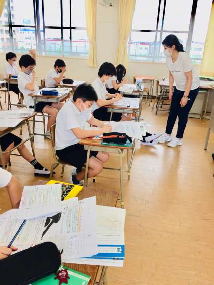 インターネットの投稿を読み比べる学習をしています。教員が作ったワークシートを活用しています。児童のワークシートです。→
