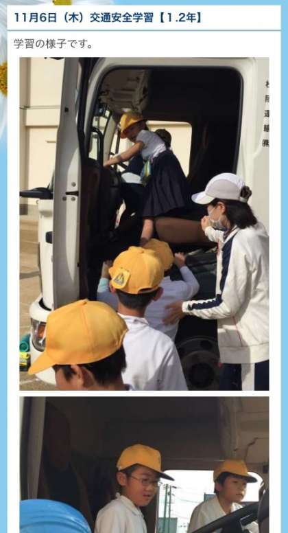 トラックの運転席からは、見えないところがあります。道をわたるときは、気をつけましょう。