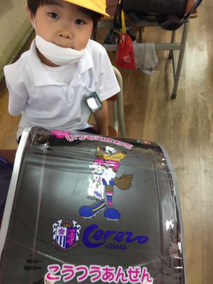 セレッソ大阪が、 安全な登下校のために、1年生全員にランドセルカバーをくださいました。