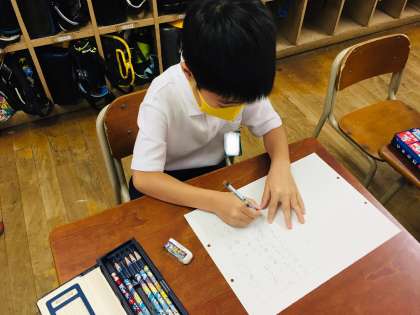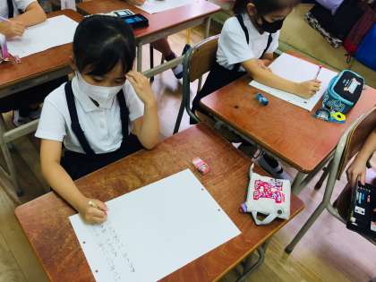 校長先生からのお話を聞いた後、一人ひとりがいじめについて考え、作文を書きました。