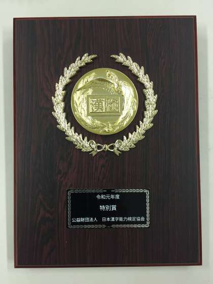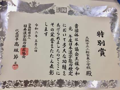 日本漢字能力検定協会から、特別賞をいただきました。今年度も満点合格を目指して、全校で取り組みましょう。