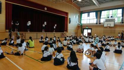今日の児童集会は、うさぎ きりん こあら ぞう とら ねずみ ぺんぎん グループで実施しました。