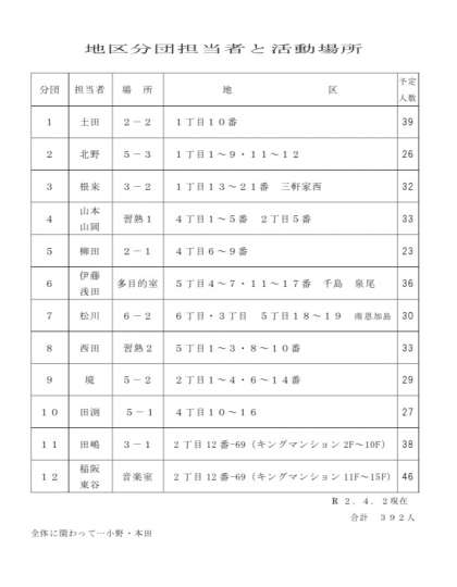地区分団担当者と活動場所について