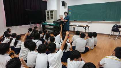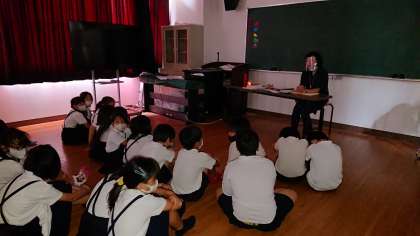 今日は、4年生の児童に「ひまわりの会」の方がおはなし会をしてくださいました。