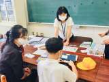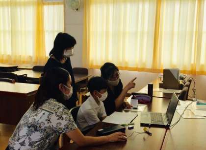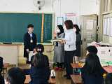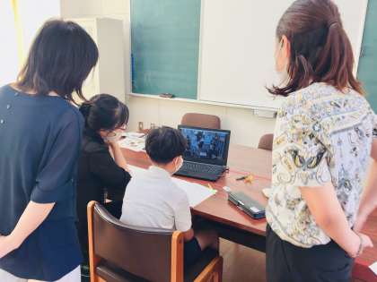 今日は、「学校の一年」「学校ルール」「給食」について、学習しました。母語指導の先生に隣に座っていただき、映像を見ながら日本語指導の先生から学びました。