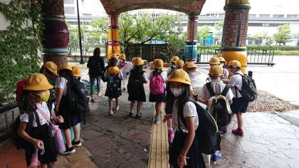 第一グループの2組さん達の見学が終わりました。2組は今から学校へ戻ります。