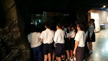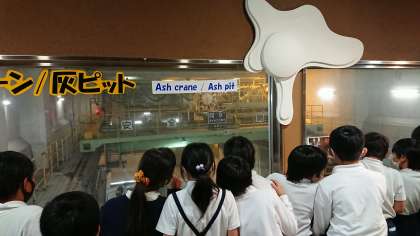炎の洞窟 灰クレーンなどを見学しています。