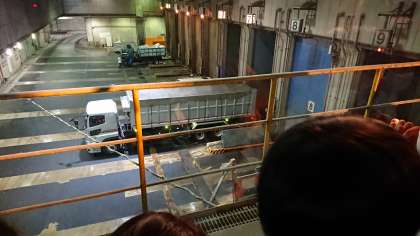 ごみが集まってくるプラットホームです。大阪市、松原市、八尾市、守口市のごみが集まってきます。