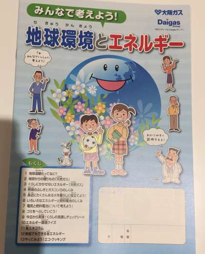「ドライヤーのコンセントをつけっぱなしにしない。」「エコバッグを使う」「パソコンを使い終わったら、電源を切る」「お皿の汚れをふく」「お風呂のふたをしめる」「水を流しっぱなしにしない」などを発表をしていました。