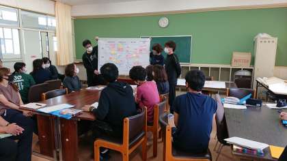「大造じいさんとがん」の研究授業の検証をしました。教員みんなでワークショップ型の討議をし、発表をしました。