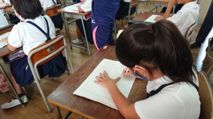 「見えないってどんなこと」という題材で、視覚障害の人の生活について知り、自分たちにできることについて考えます。